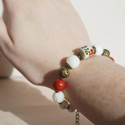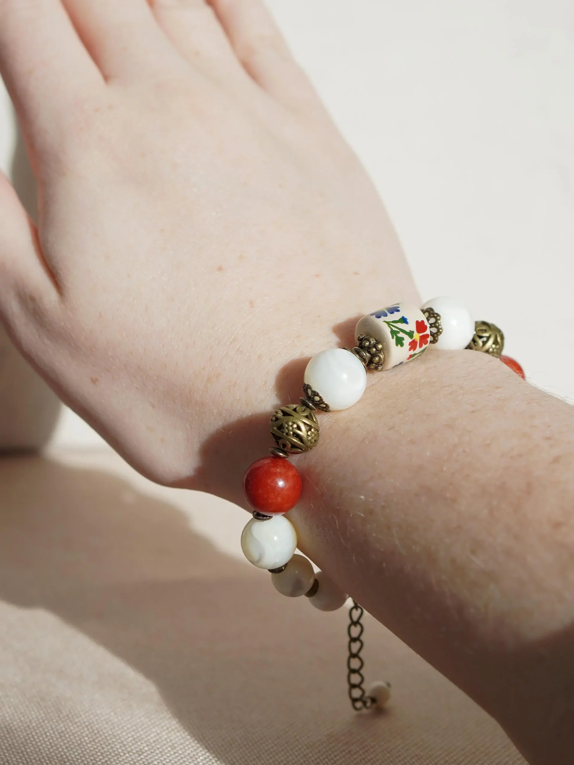 Peach Gemstone Stretch Bracelet Waterproof + Hypoallergenic Comfy