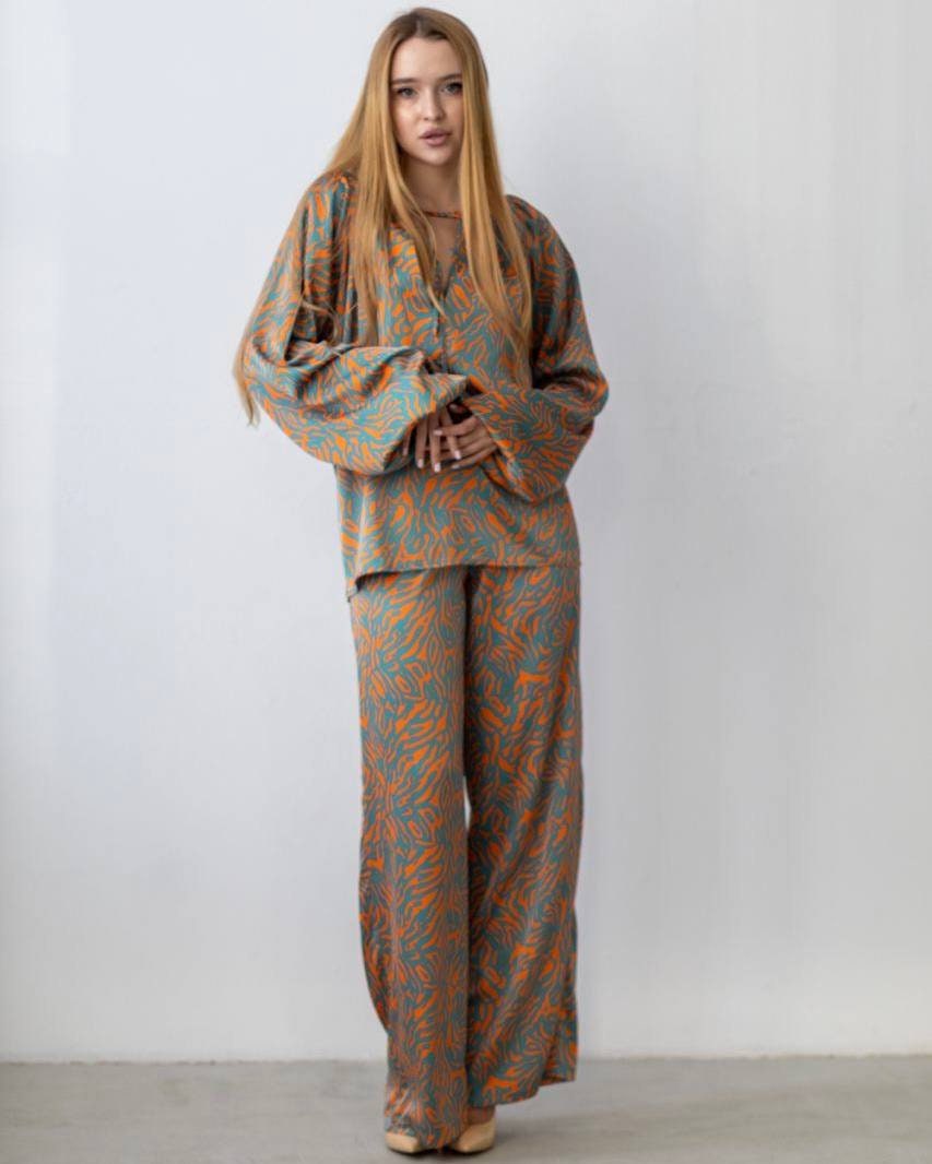 Women’s stylish animal print suit made of Armani silk.