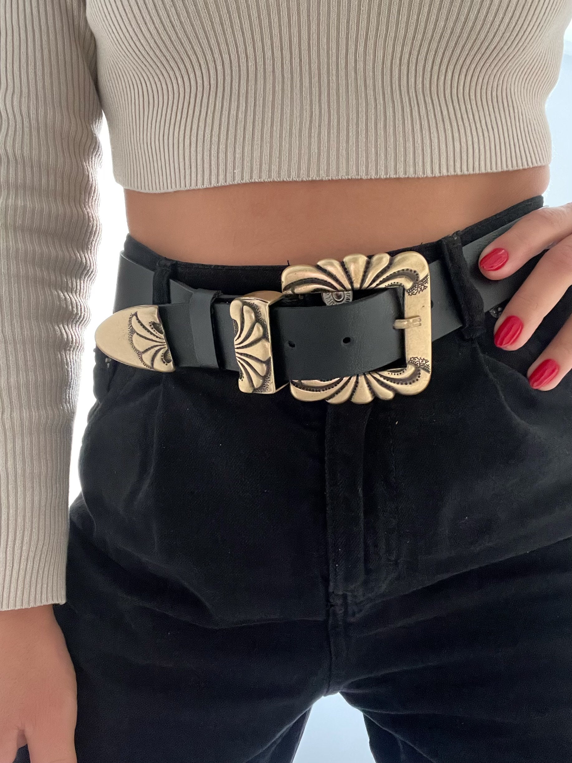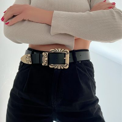 A Handmade Leather Belt for Women is made from real genuine leather in black color with special Bronze Buckle that create a really unique result. At the center of the belt there is a Square buckle with a metal loop besides it and a tiny one in same philosophy at the edge of the belt that completes this unique creation. The belt is lightweight, it has medium width and you can wear it as a high waist belt with dresses or as a low waist belt with your pants. Choose the ideal lenth for you between 8 different dimensions. Measure your waist and add 15 cm to your final length Selection. (THE DIMENSIONS ARE FOR BELT NOT FOR YOUR WAIST). Find it only at our Store.