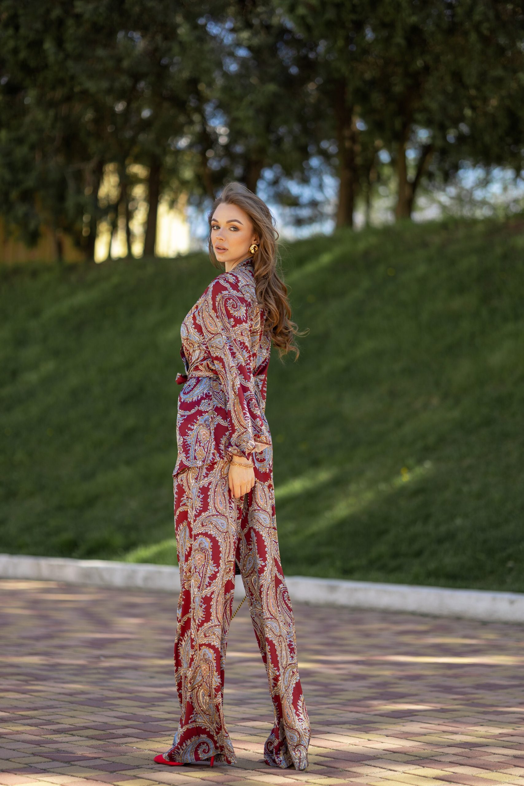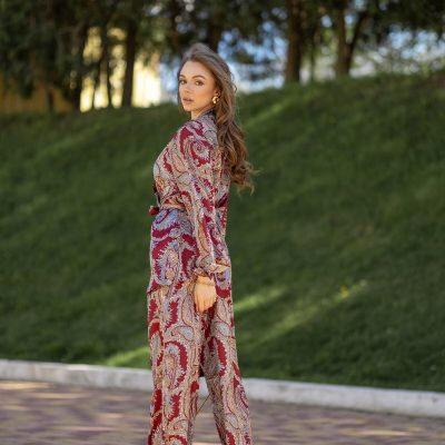 Burgundy Paisley Pajama Set: Armani Silk Loungewear