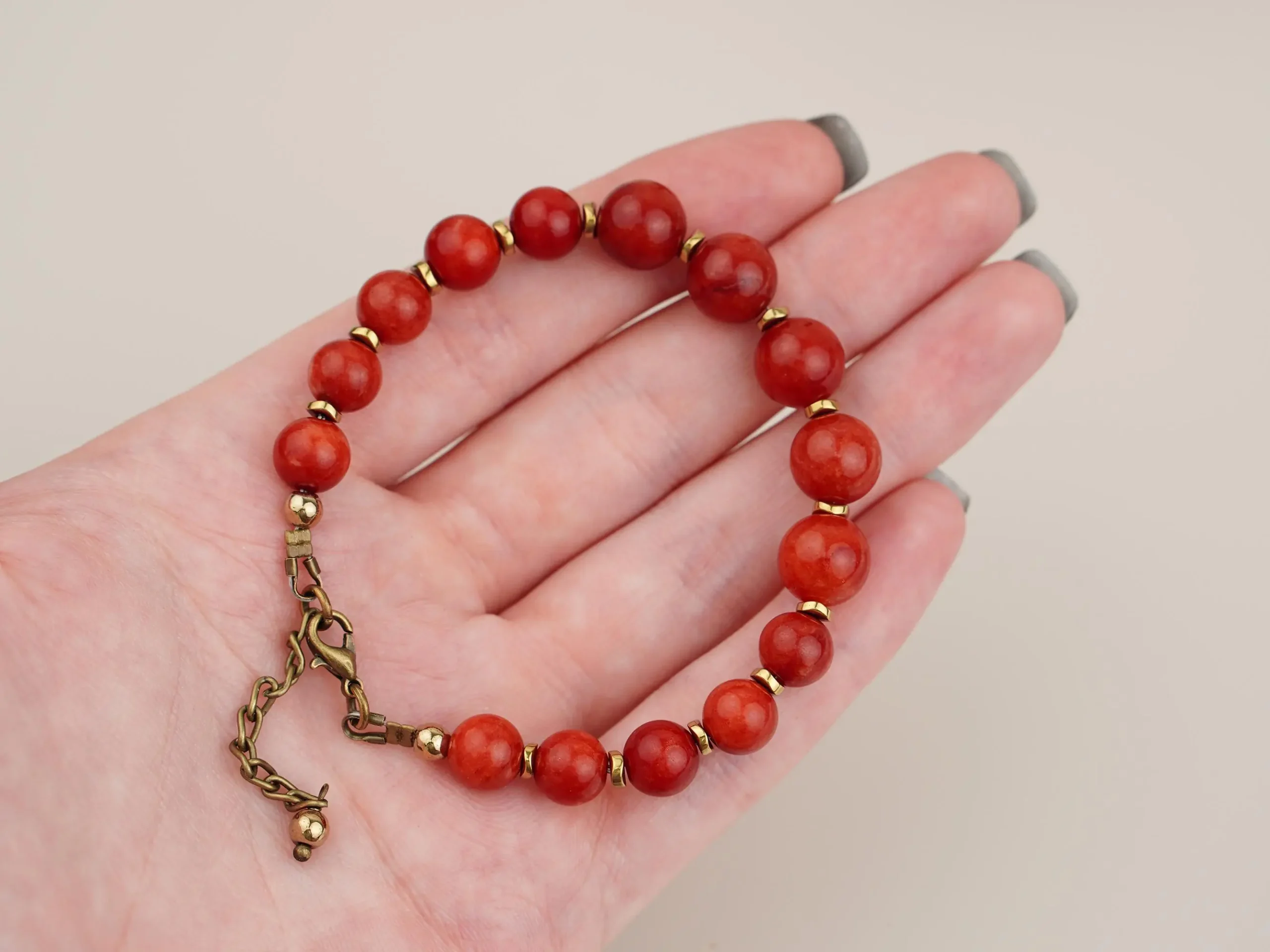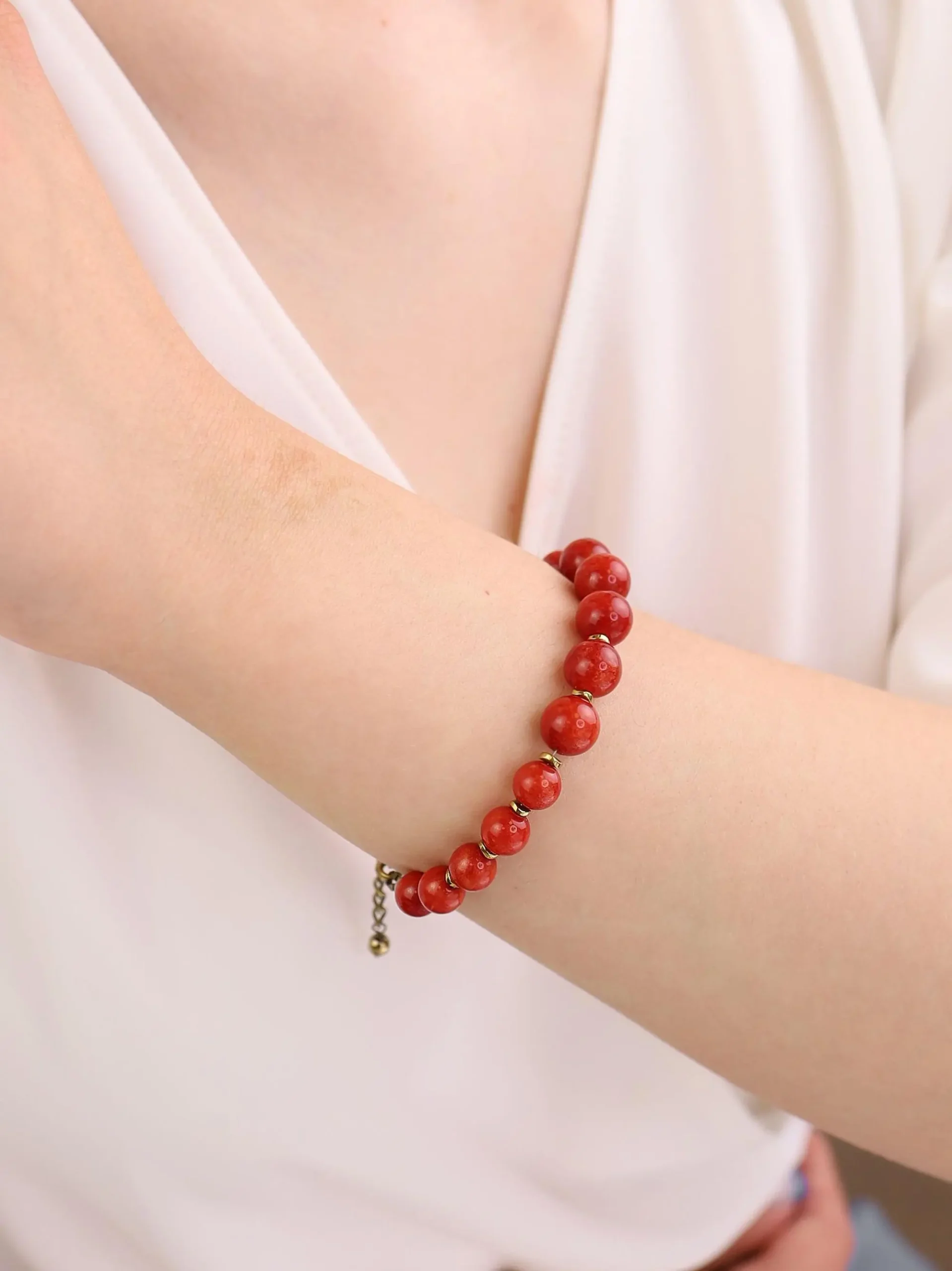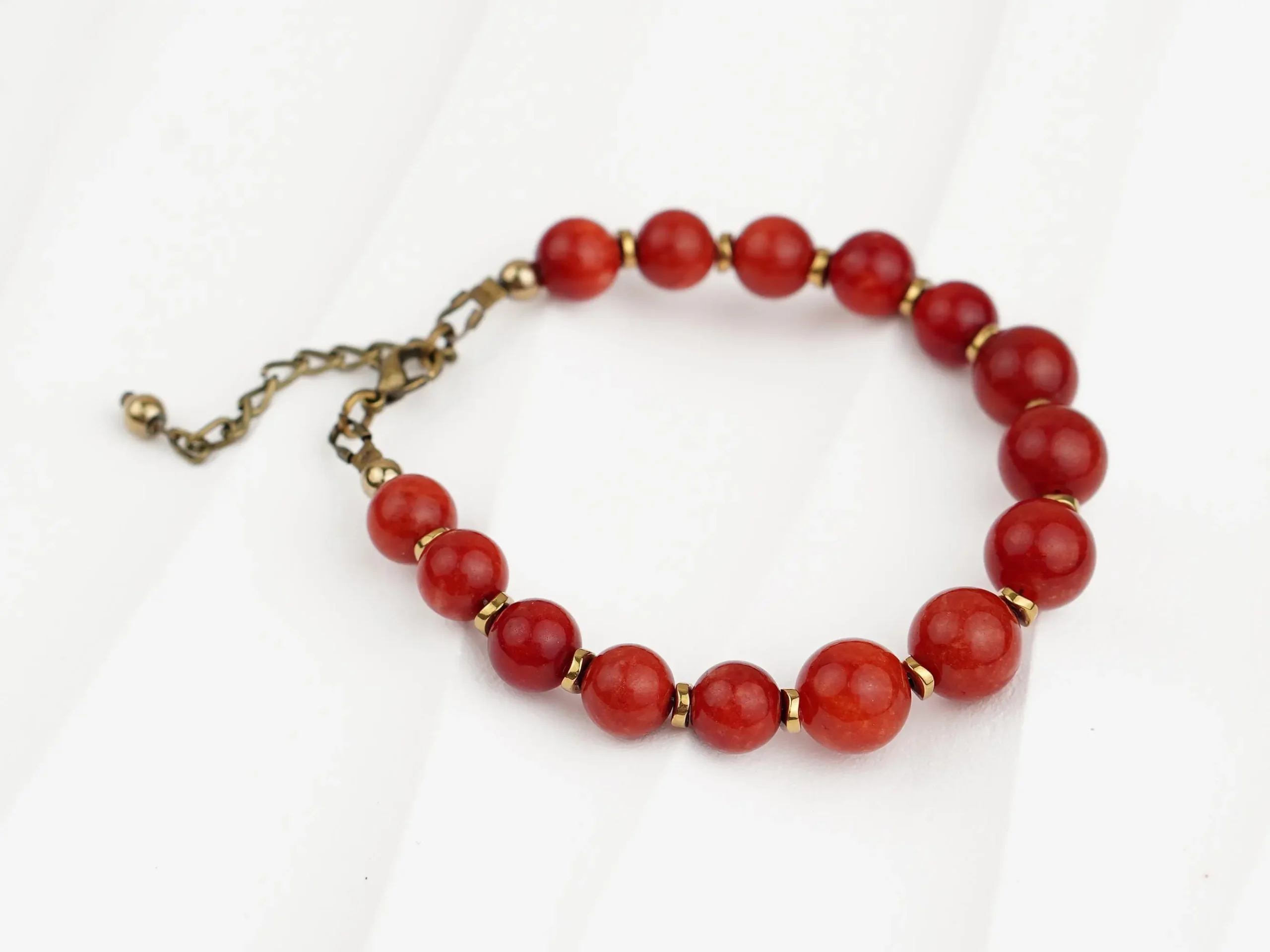 Peach Gemstone Stretch Bracelet Waterproof + Hypoallergenic Comfy