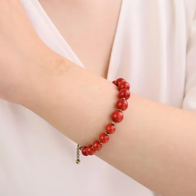 Peach Gemstone Stretch Bracelet Waterproof + Hypoallergenic Comfy